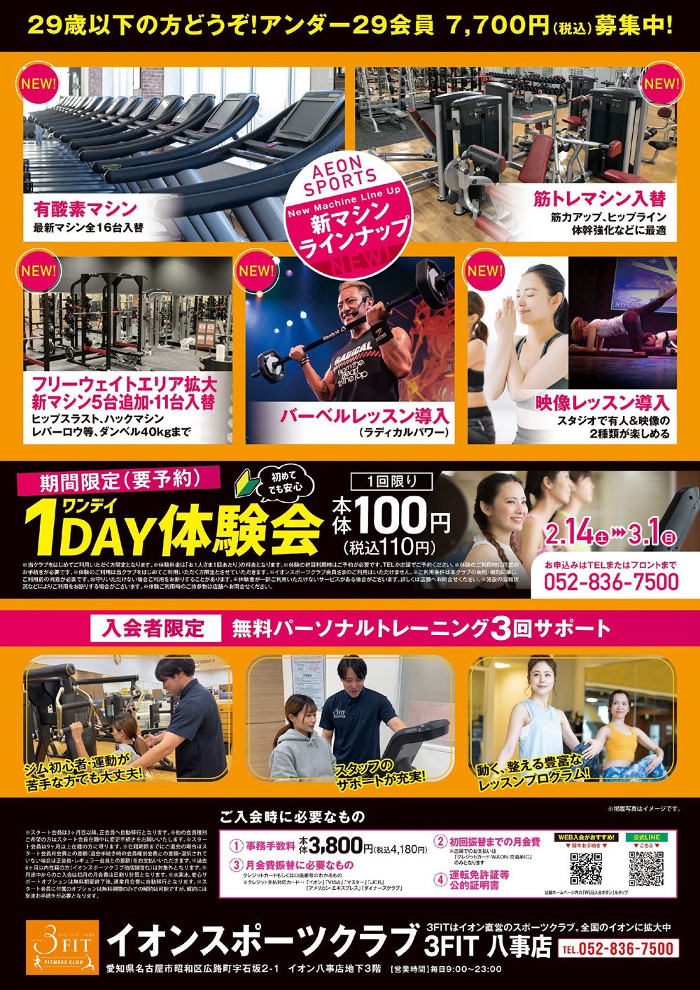 • イオンスポーツクラブ 3FIT 八事店お知らせバナー2