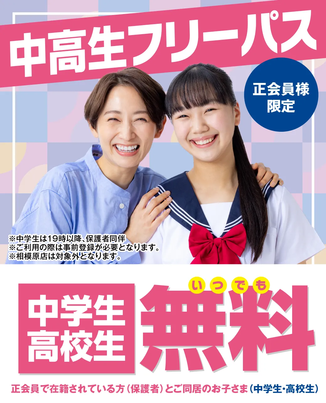 3FITのおすすめポイント 家族フリーパスの案内 中高生フリーパスの案内 無料姿勢測定