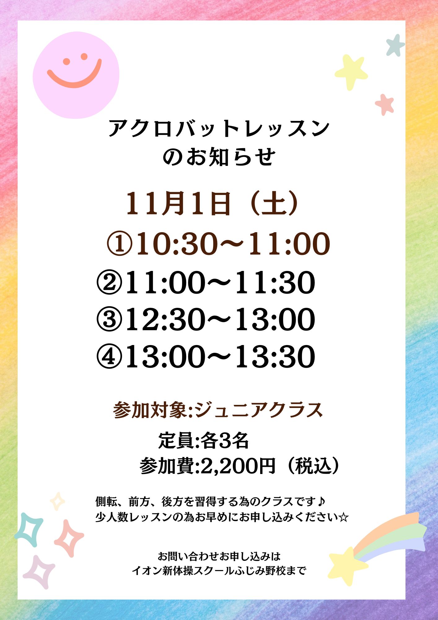【ふじみ野校】アクロバットレッスンのお知らせ