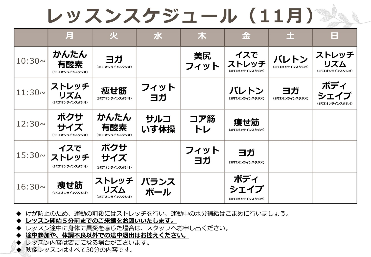 店舗でのレッスンスケジュールは、以下をご確認ください。