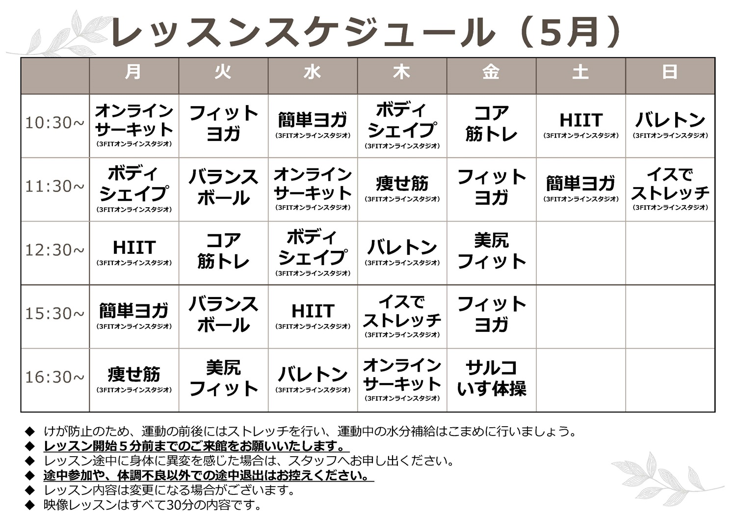 店舗でのレッスンスケジュールは、以下をご確認ください。
