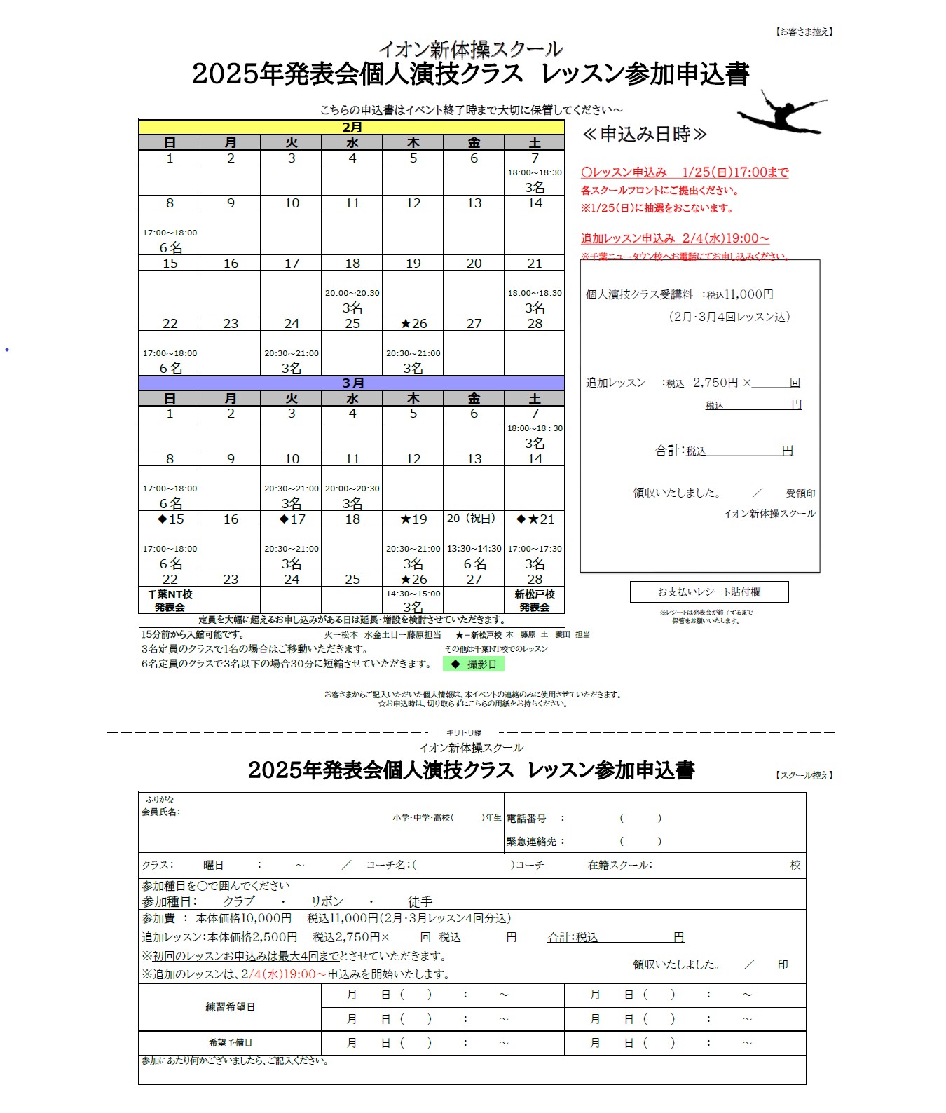【千葉NT】2025年度発表会 個人演技クラス2・3月要項