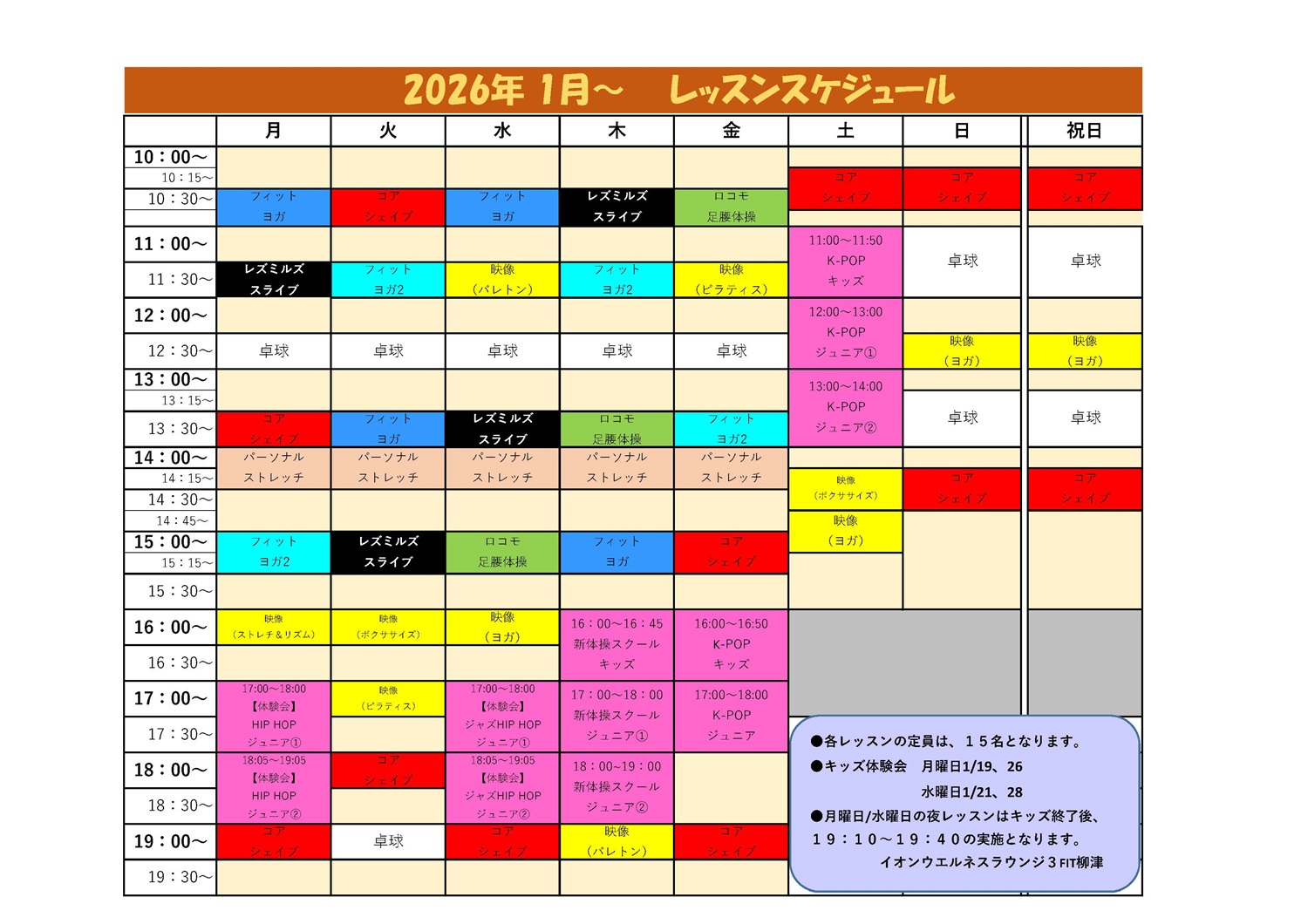 【柳津店】レッスンスケジュール