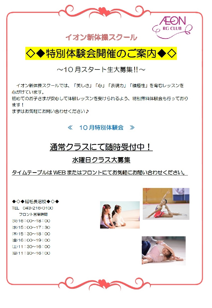 【稲毛長沼校】10月度特別体験会のお知らせ