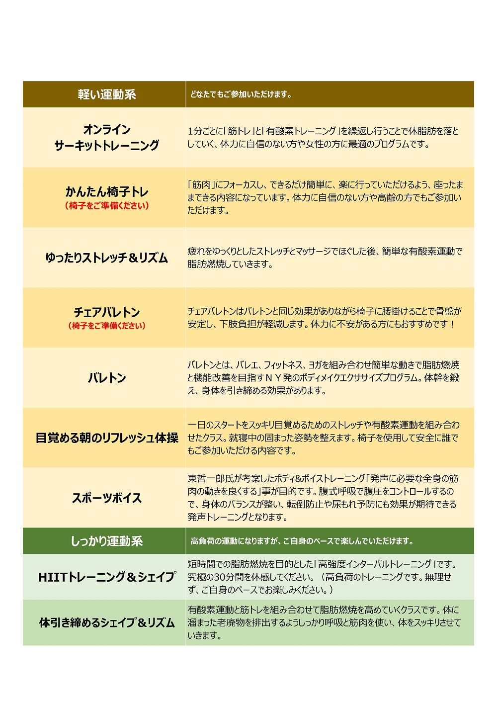 3FITオンラインスタジオレッスンタイムテーブルになります。