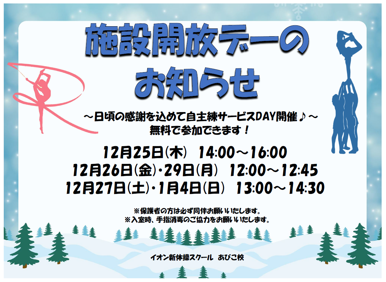 あびこ校【会員さま向け】施設開放DAYのお知らせ