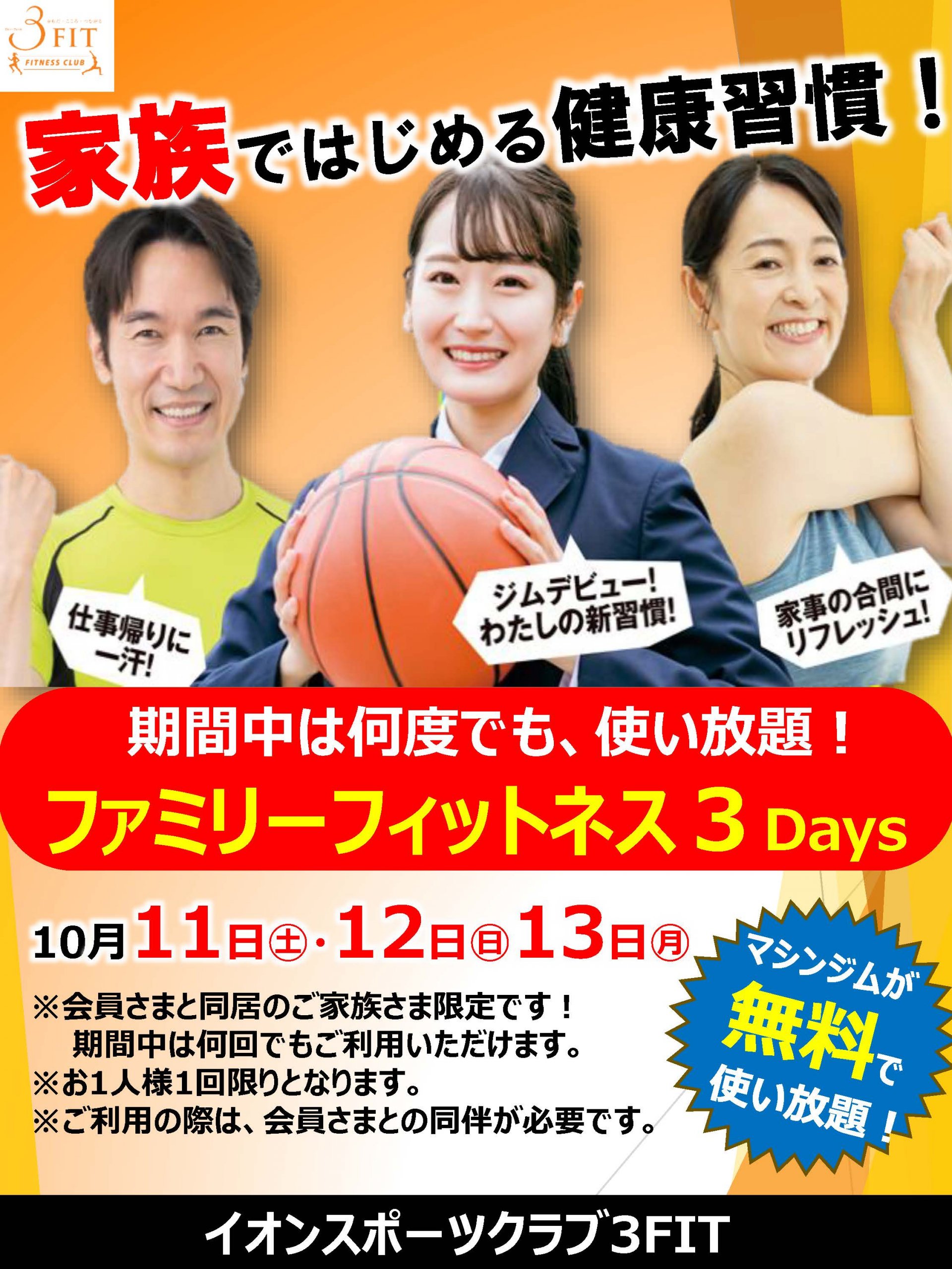 3連休はぜひイオンスポーツクラブ3FITへお越しください!