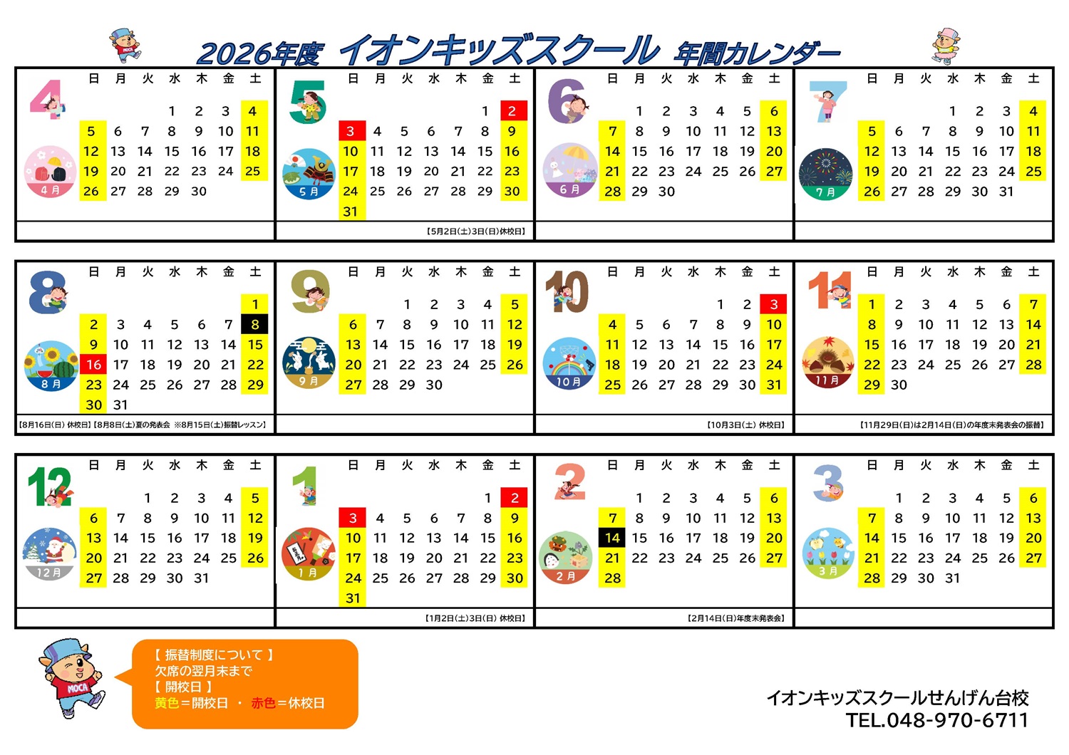 せんげん台店 2026年キッズスクールカレンダー
