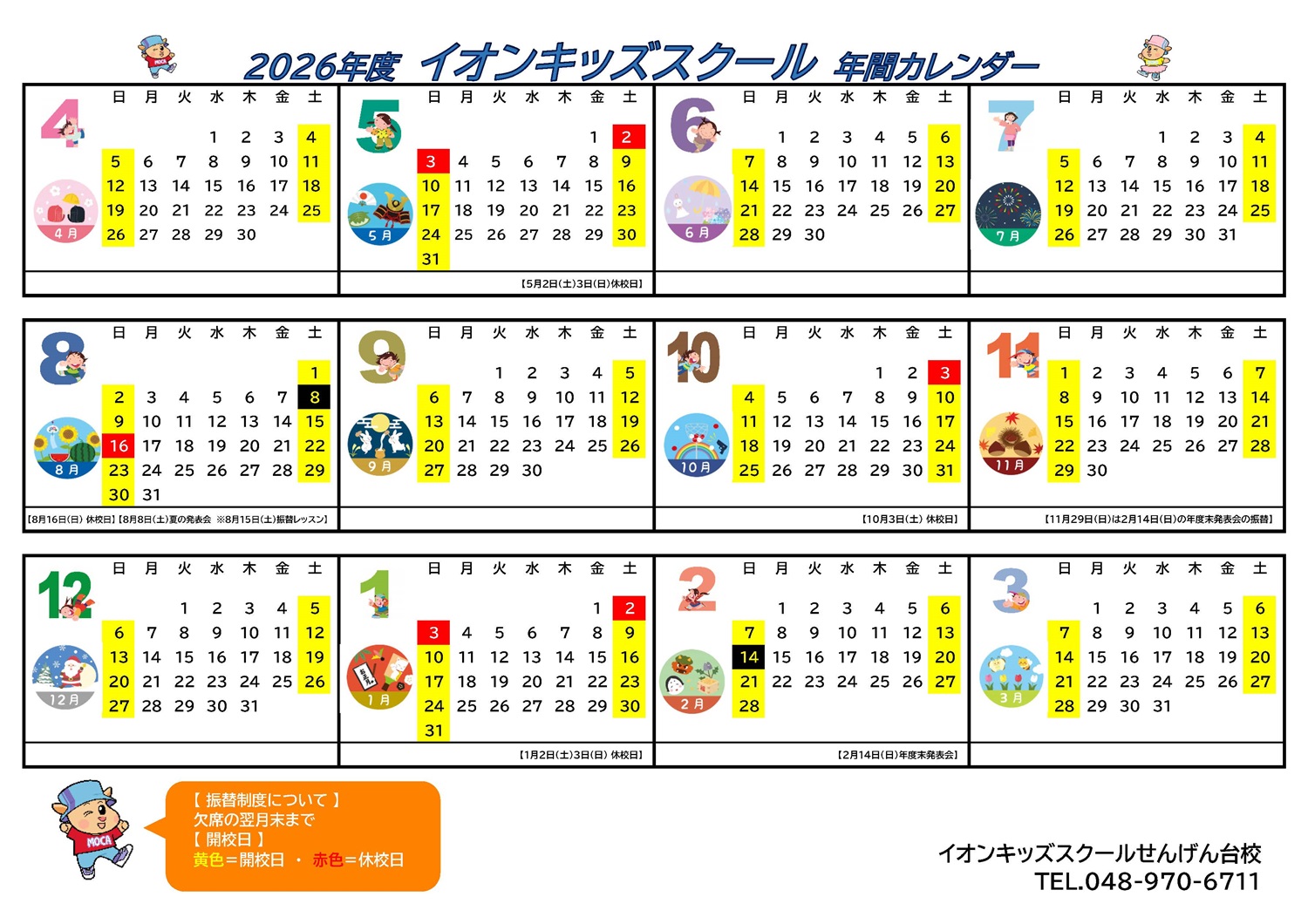 せんげん台店 2026年キッズスクールカレンダー
