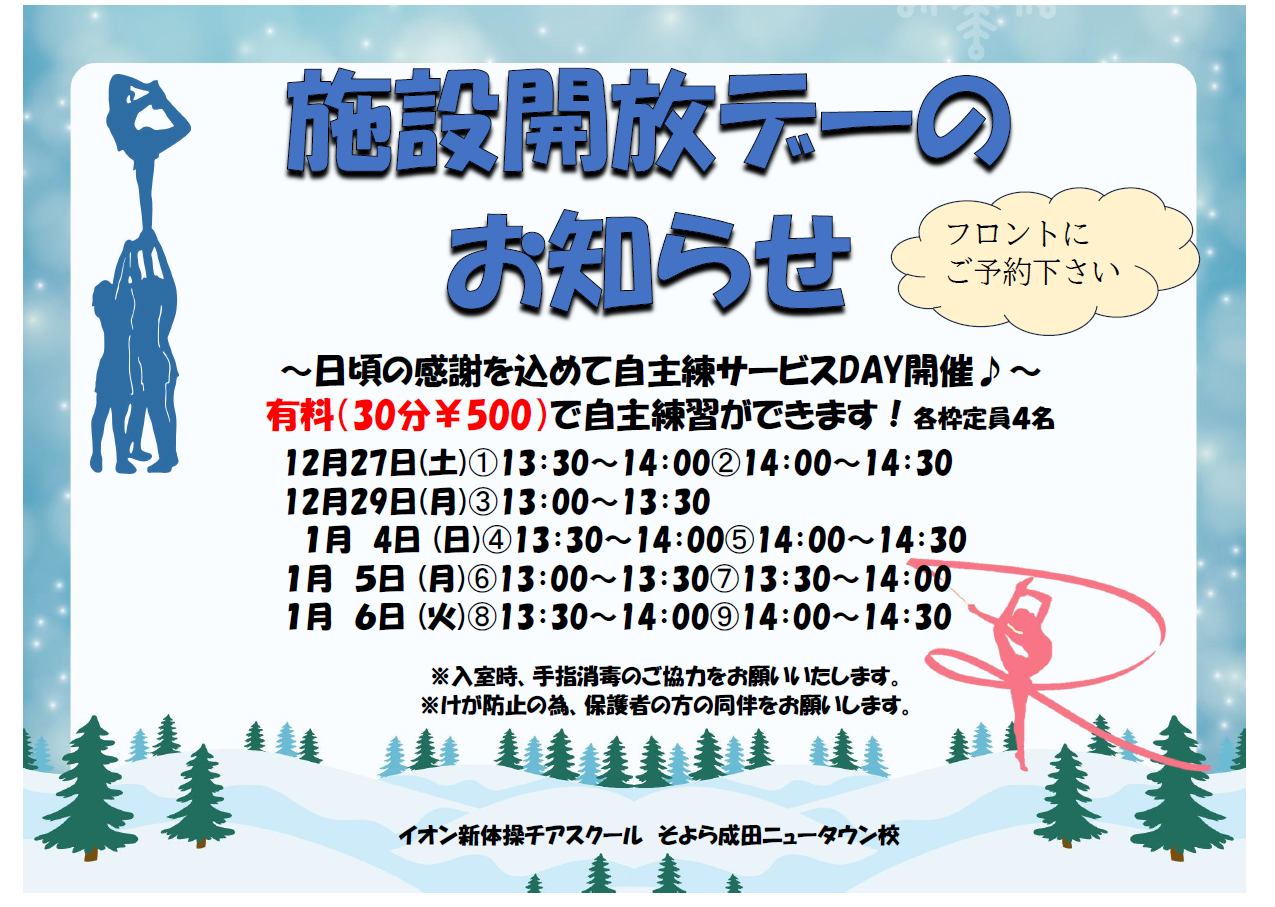 そよら成田ニュータウン校〈会員さま向け〉施設有料開放のご案内