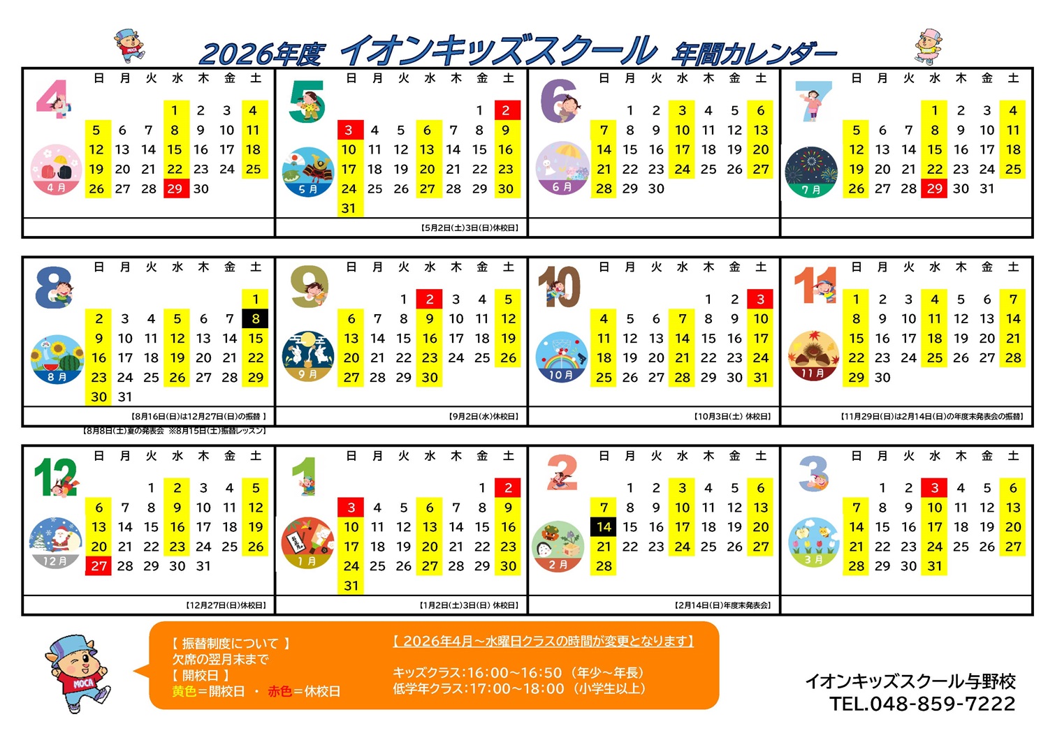 与野店 2026年キッズスクールカレンダー