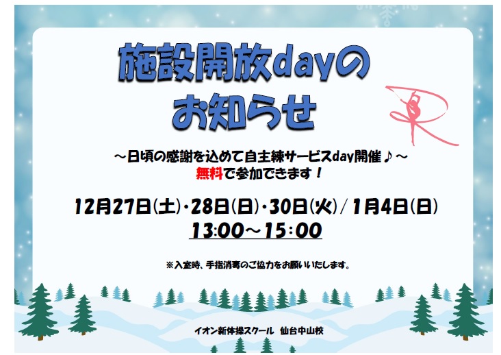 仙台中山校≪スクール生≫施設開放dayのお知らせ