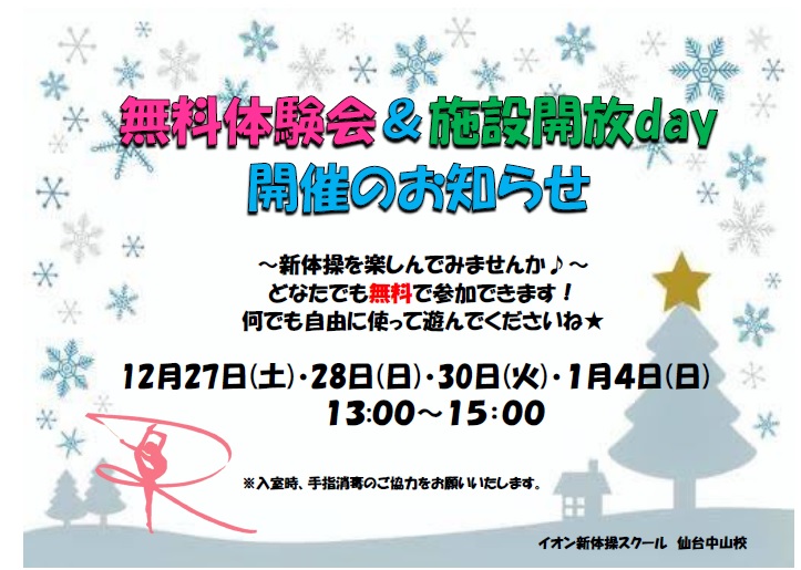 仙台中山校 無料体験会&施設開放day開催のお知らせ