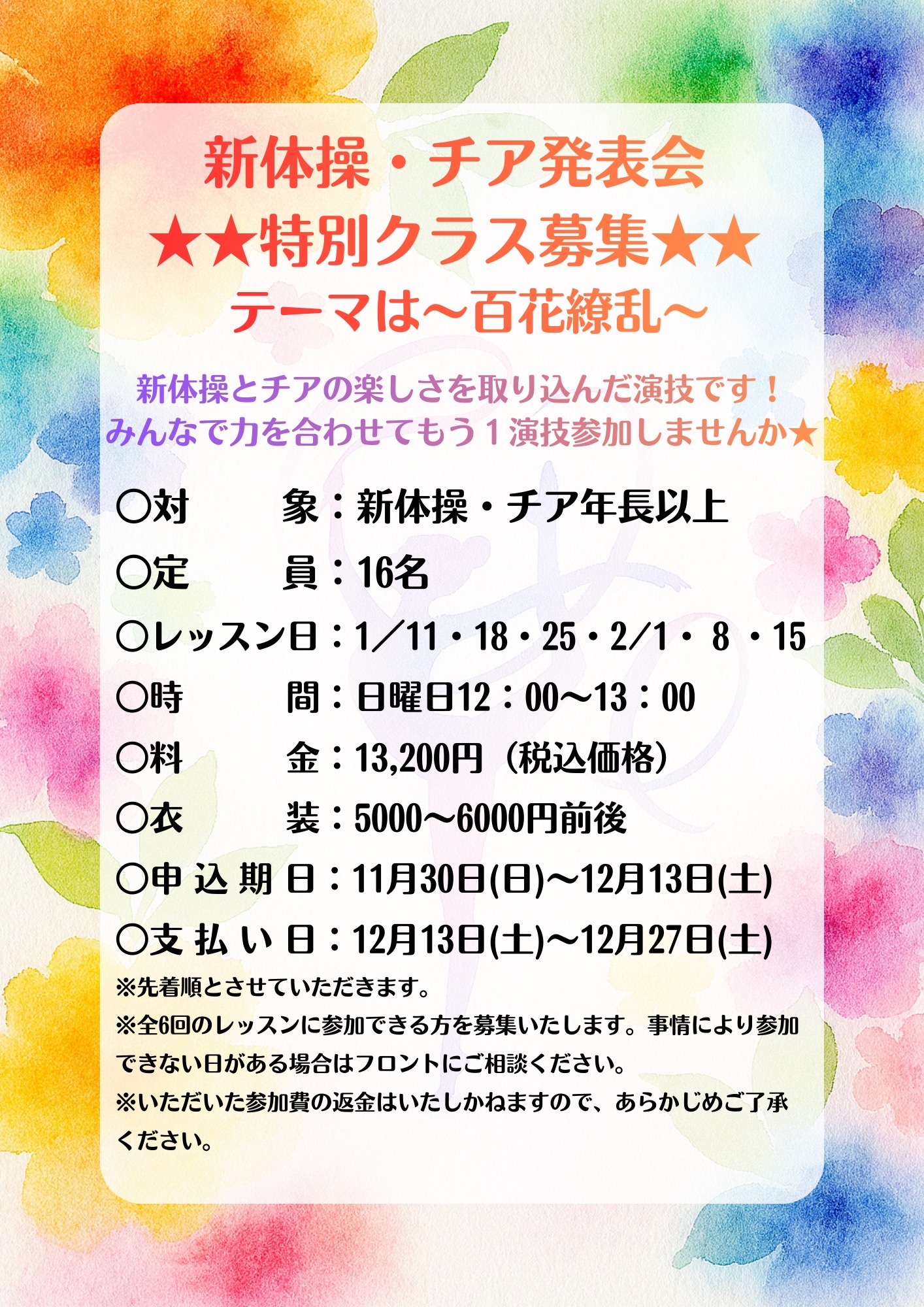 南砂校 発表会チア・新体操合同特別クラスのお知らせ★