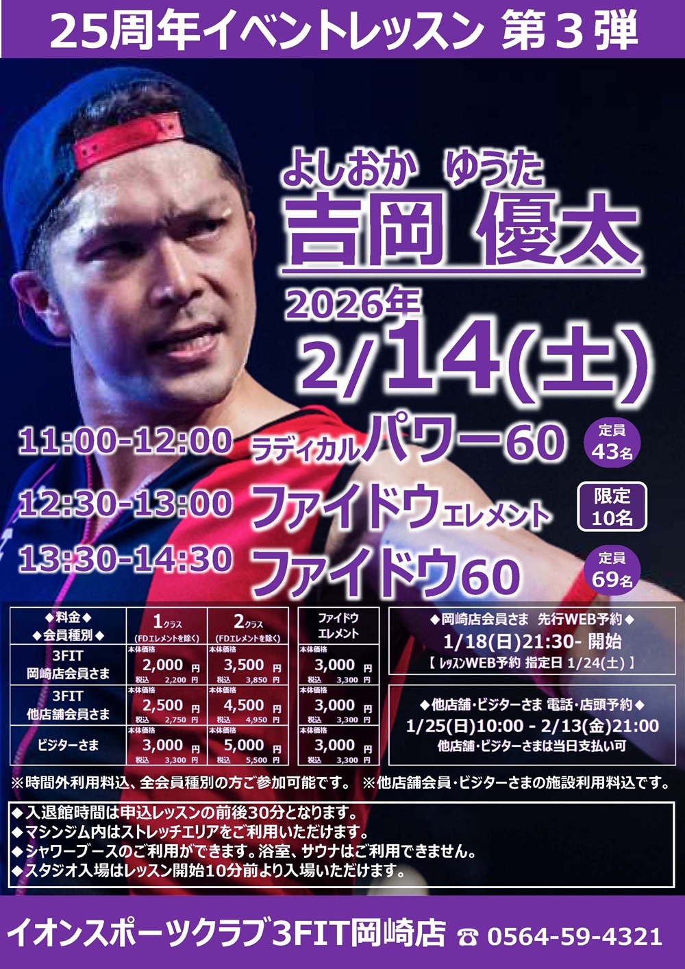 岡崎店 2/14(土)25周年イベントレッスンのお知らせ