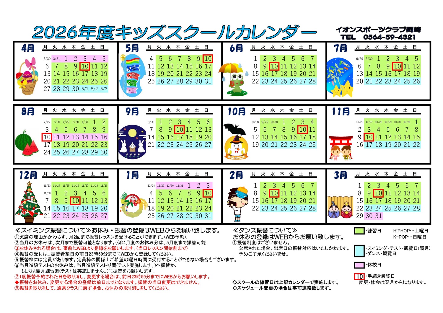 岡崎店 2026年キッズスクールカレンダー