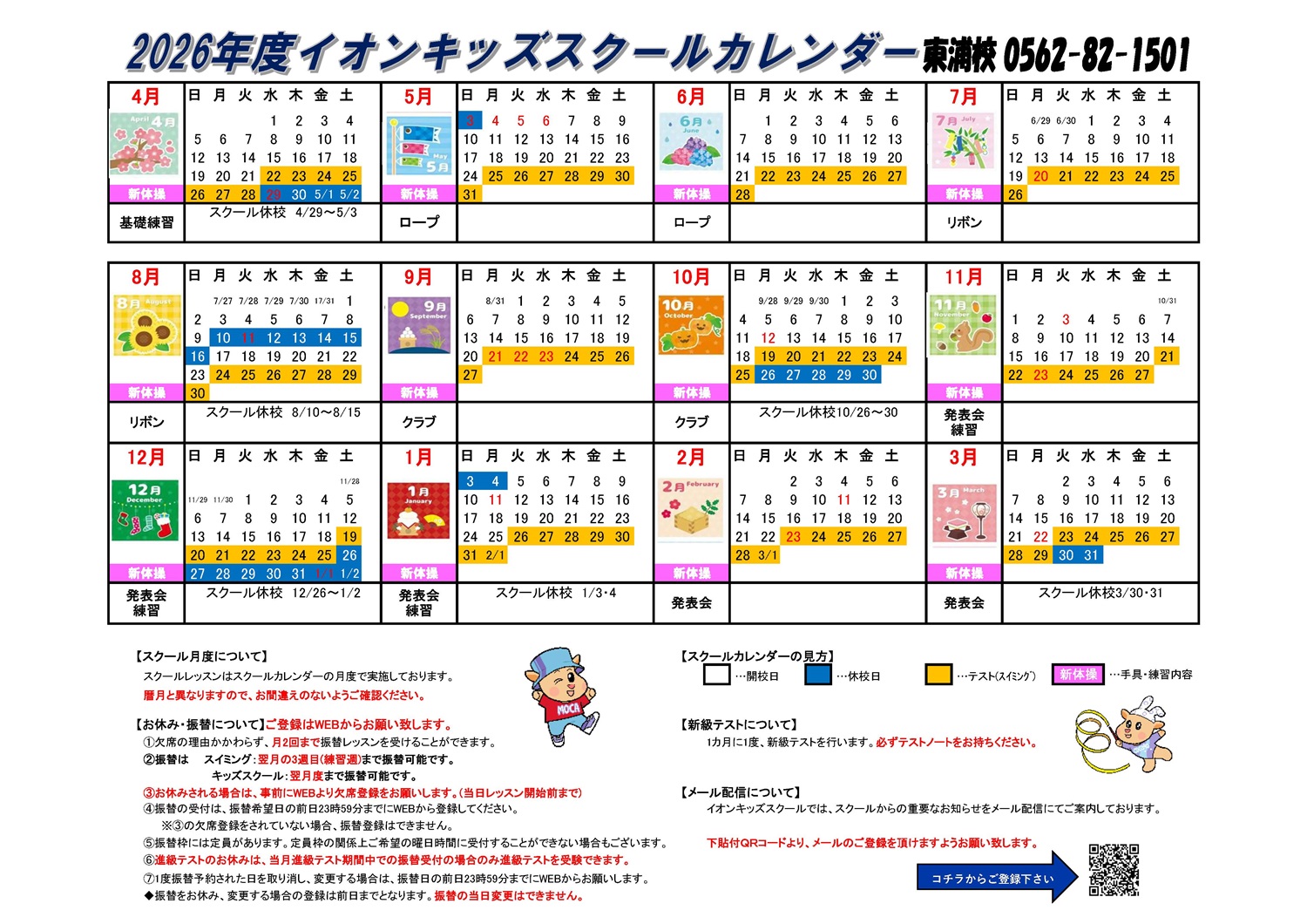 東浦店 2026年キッズスクールカレンダー