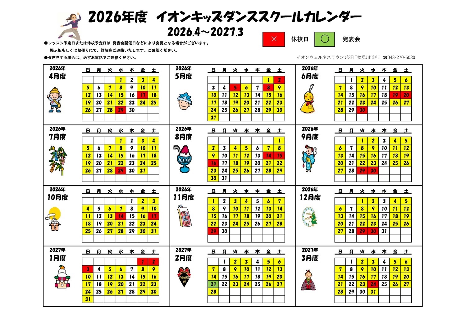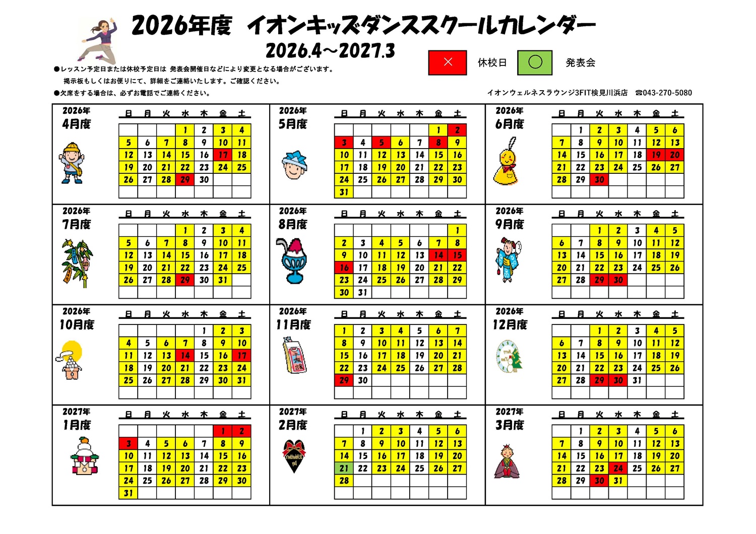 検見川店 2026年キッズスクールカレンダー
