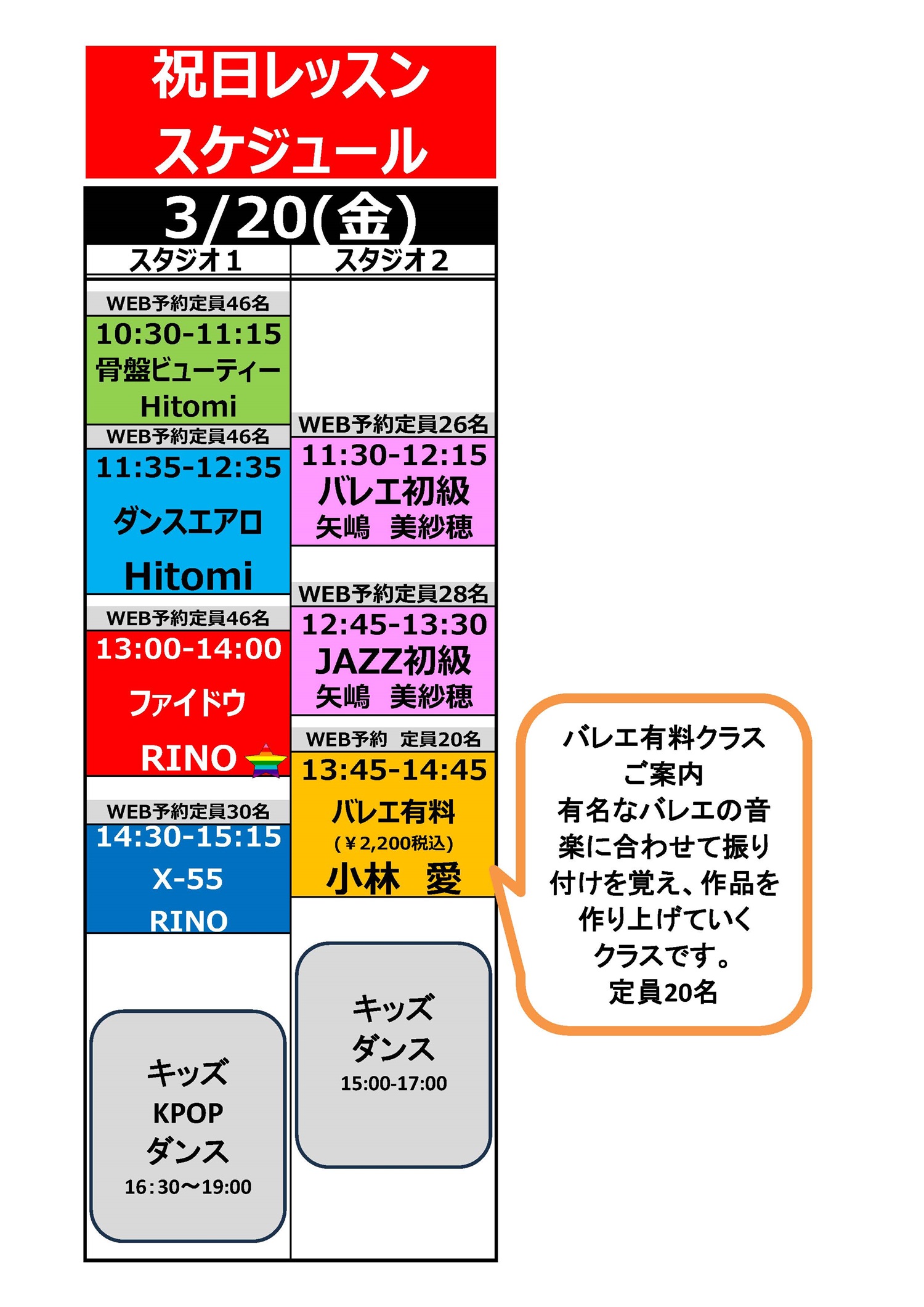 浦和美園店 3/20(金・祝)祝日レッスンスケジュール