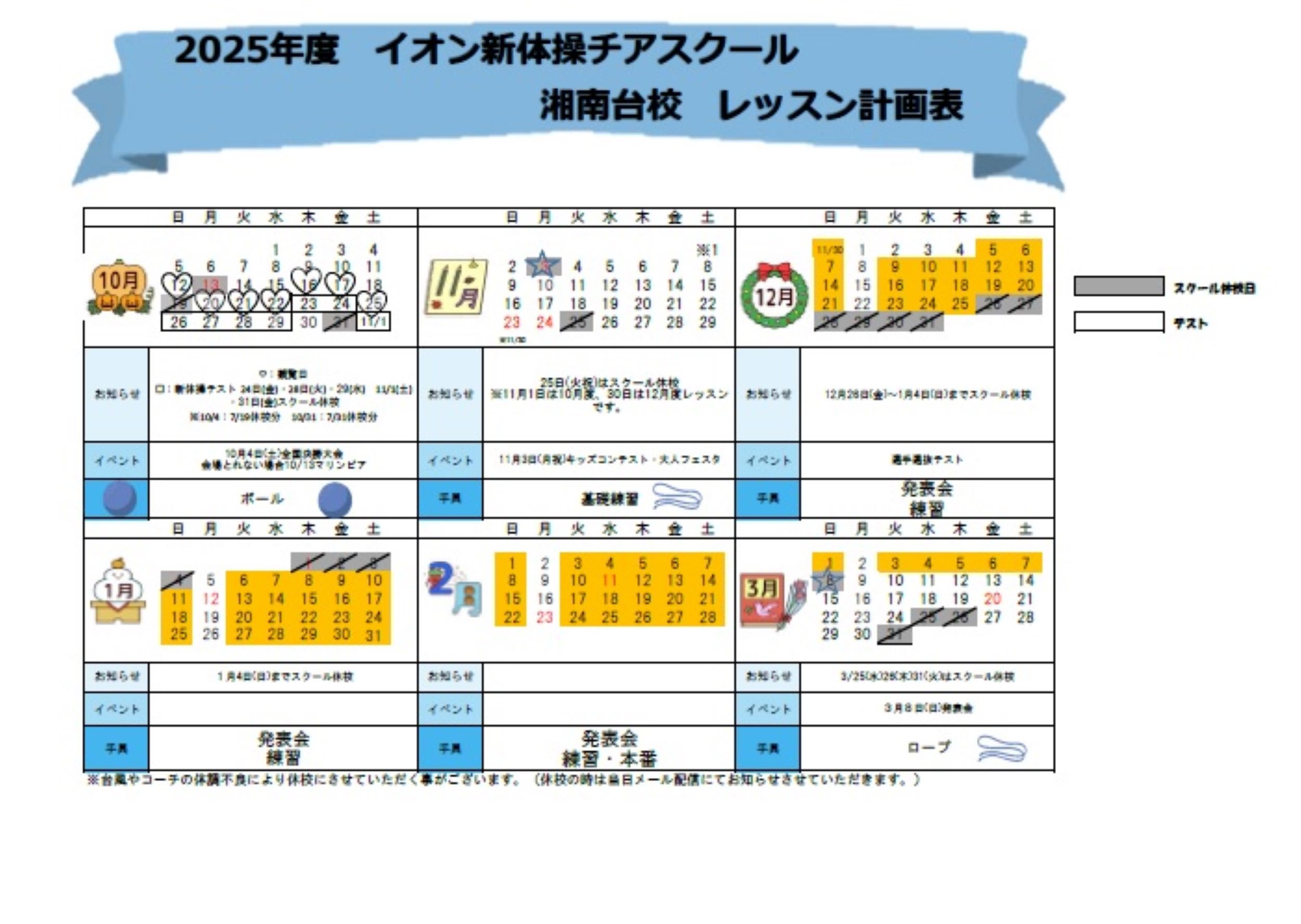 湘南台校【2025年度レッスンカレンダー】