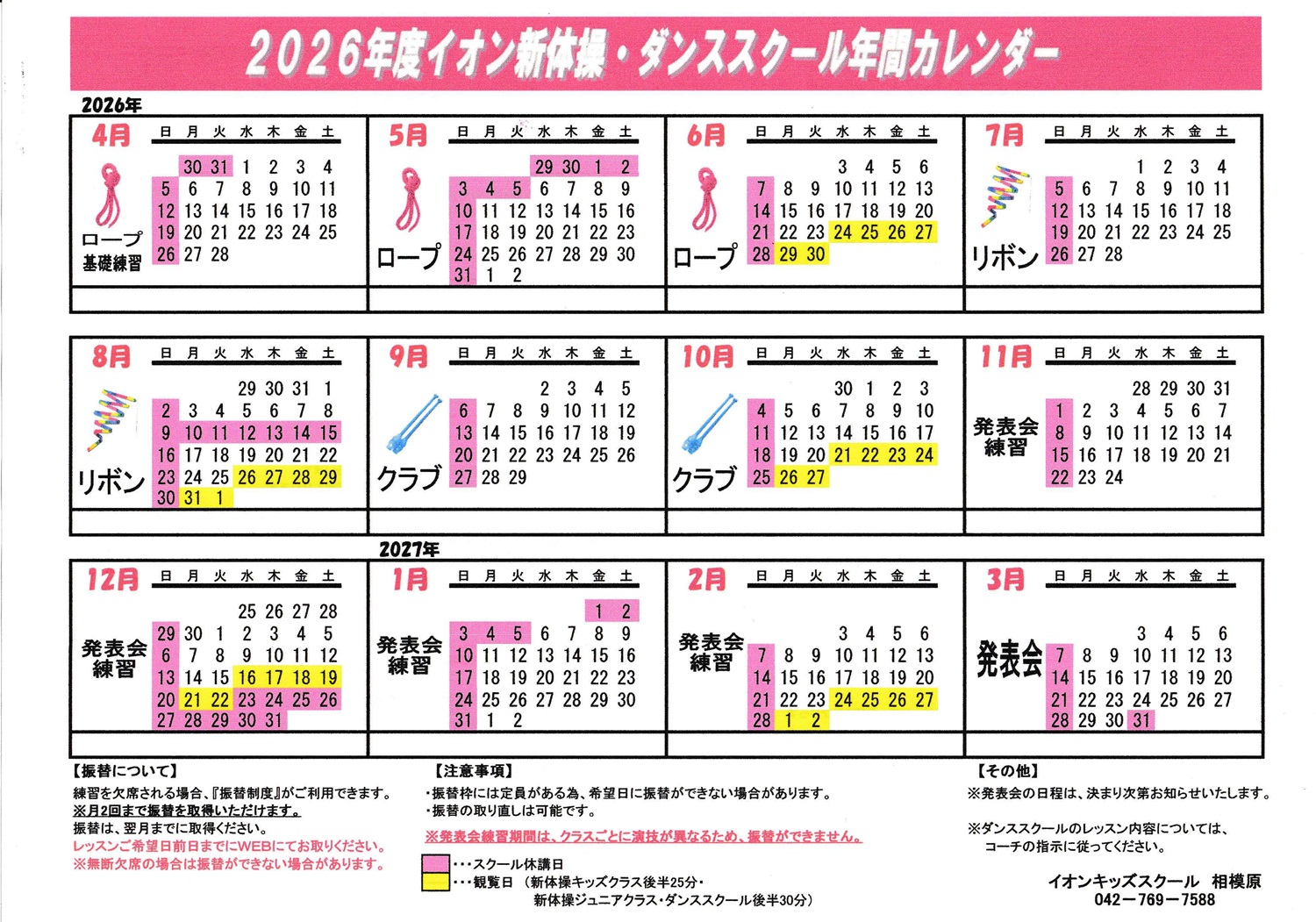 相模原店 2026年キッズスクールカレンダー