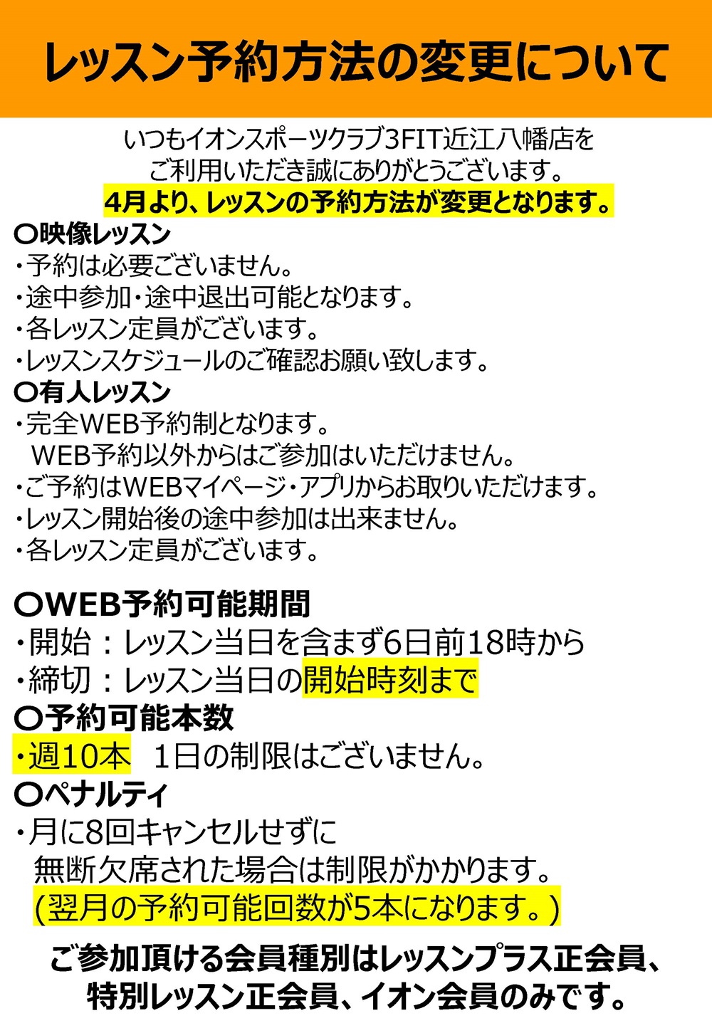 近江八幡店 4月からのレッスン予約に関するご案内