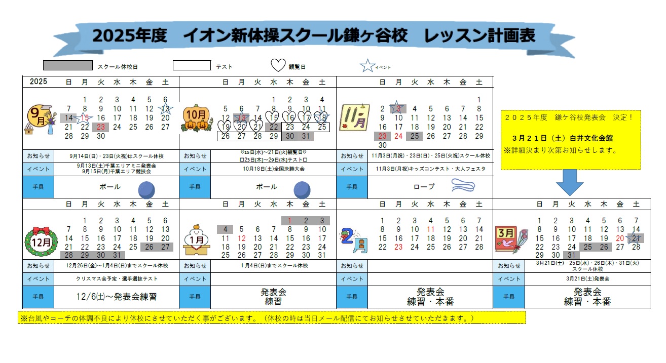 鎌ヶ谷校10月~12月レッスンカレンダー