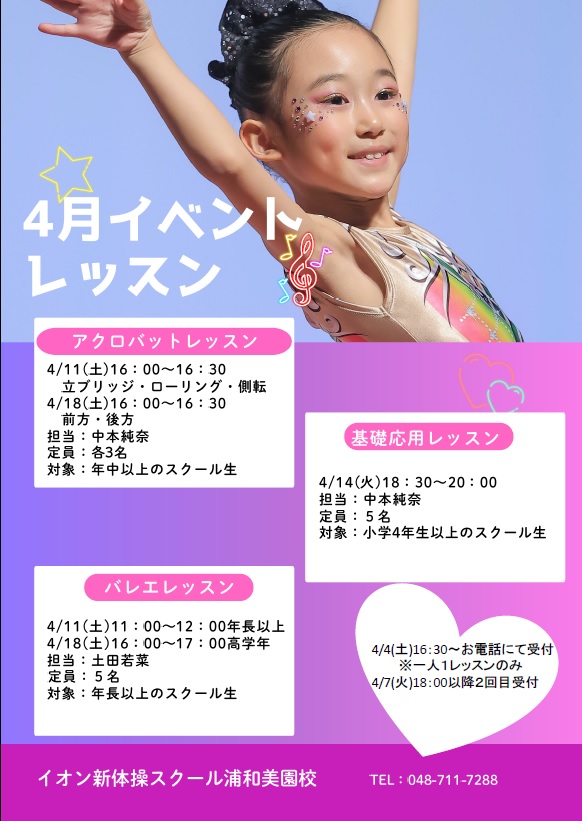 【浦和美園校】4月度イベントレッスンのお知らせ