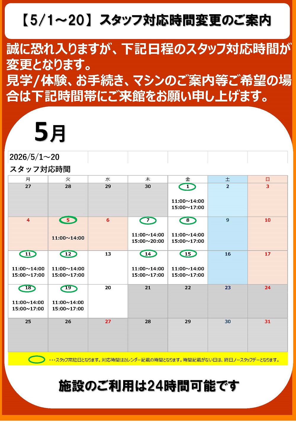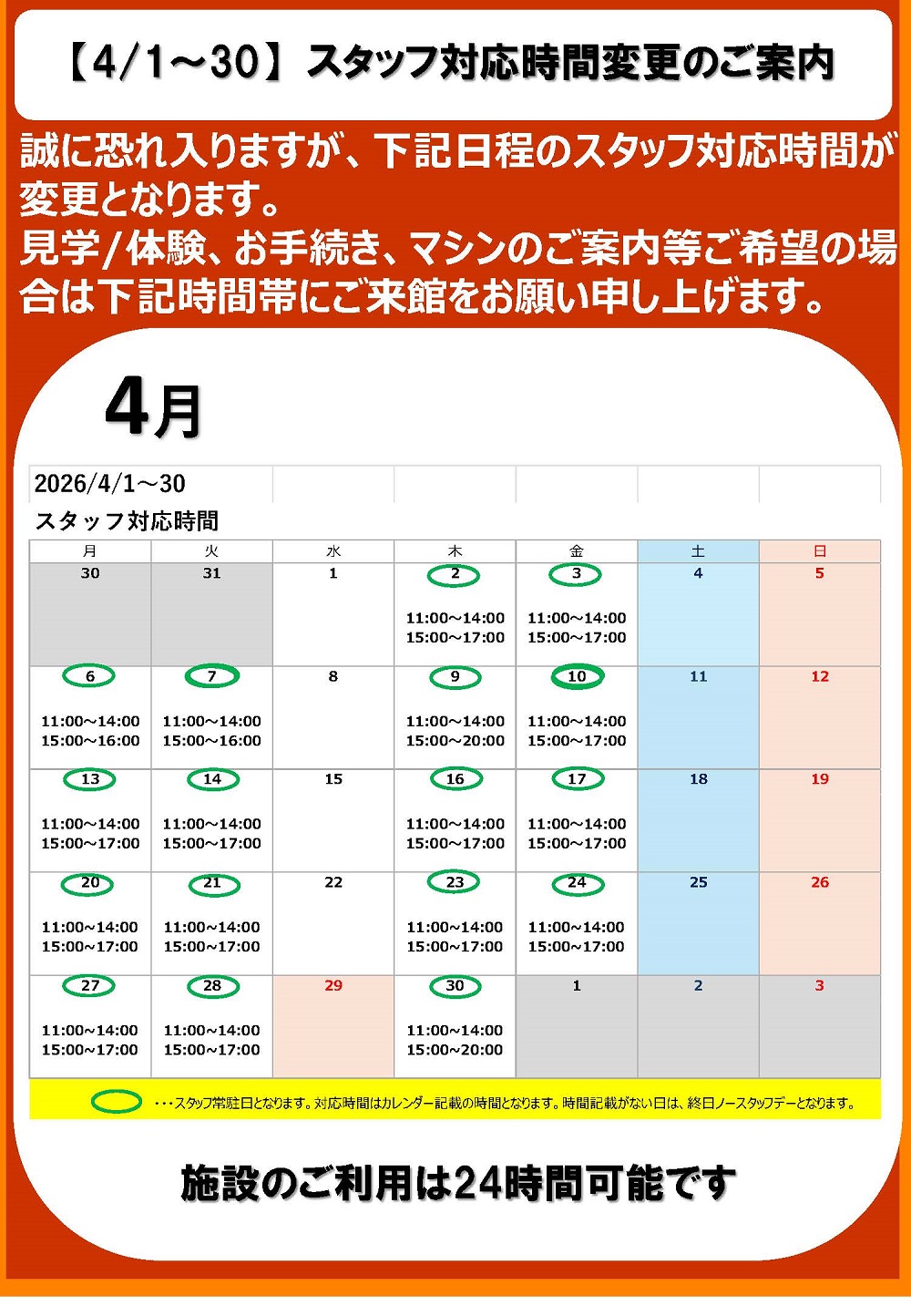 【3FIT大須賀】 スタッフ対応時間変更のご案内