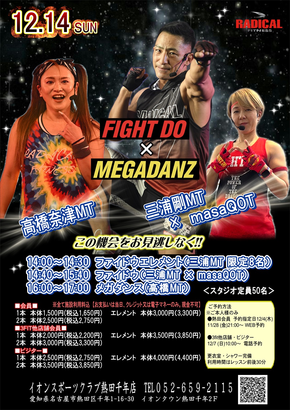 大人気の三浦剛MTをお迎えし、masaQOTとのファイドウコラボレッスンや高橋奈津MTによる皆様が笑顔になれる楽しいメガダンスのスペシャルレッスンです。