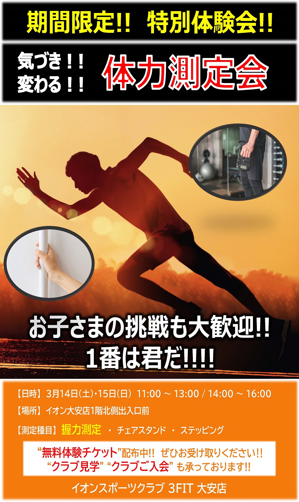 3FIT大安店 3/14㊏・3/15㊐体力測定会開催のお知らせ