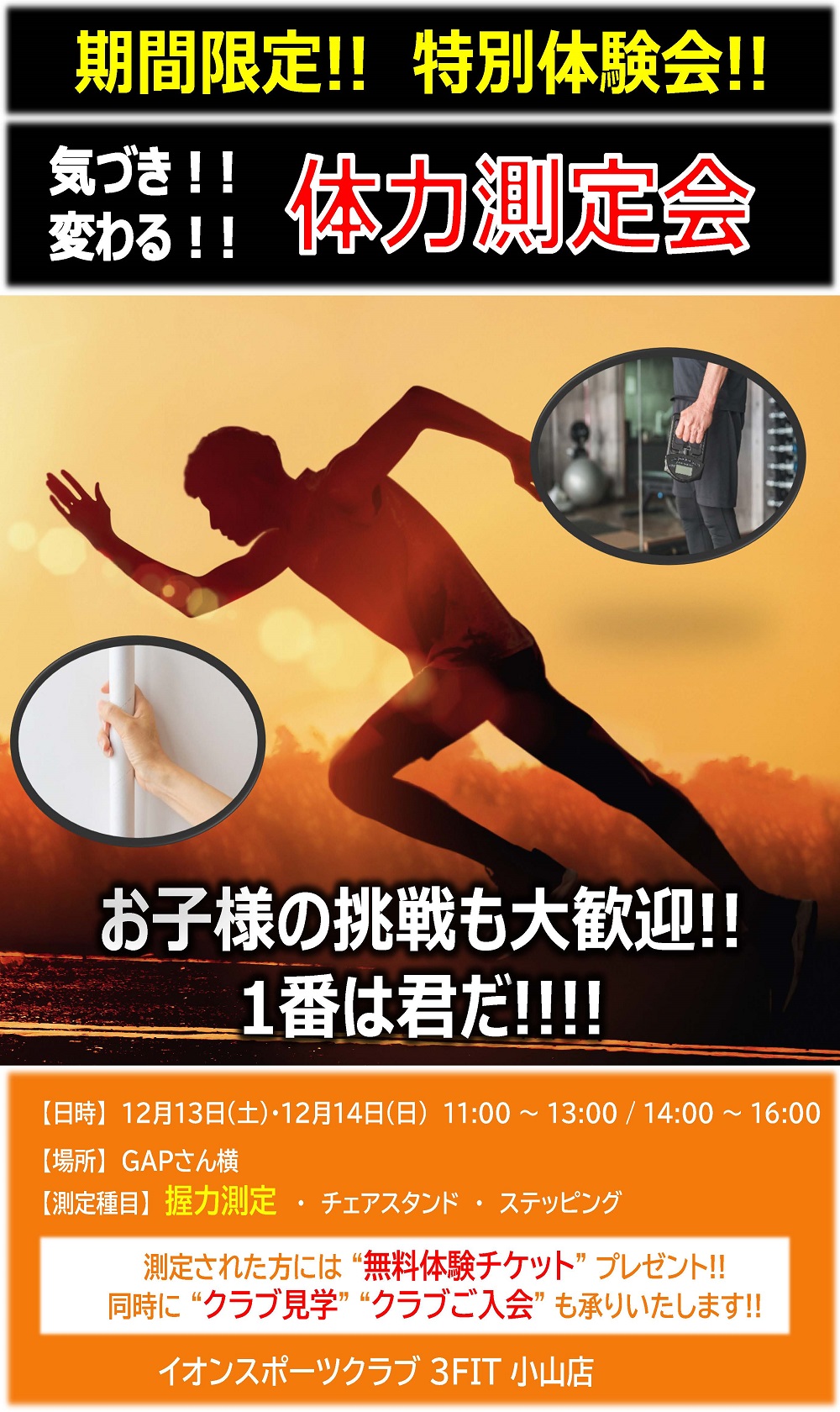 3FIT小山店 12月体力測定会開催のお知らせ