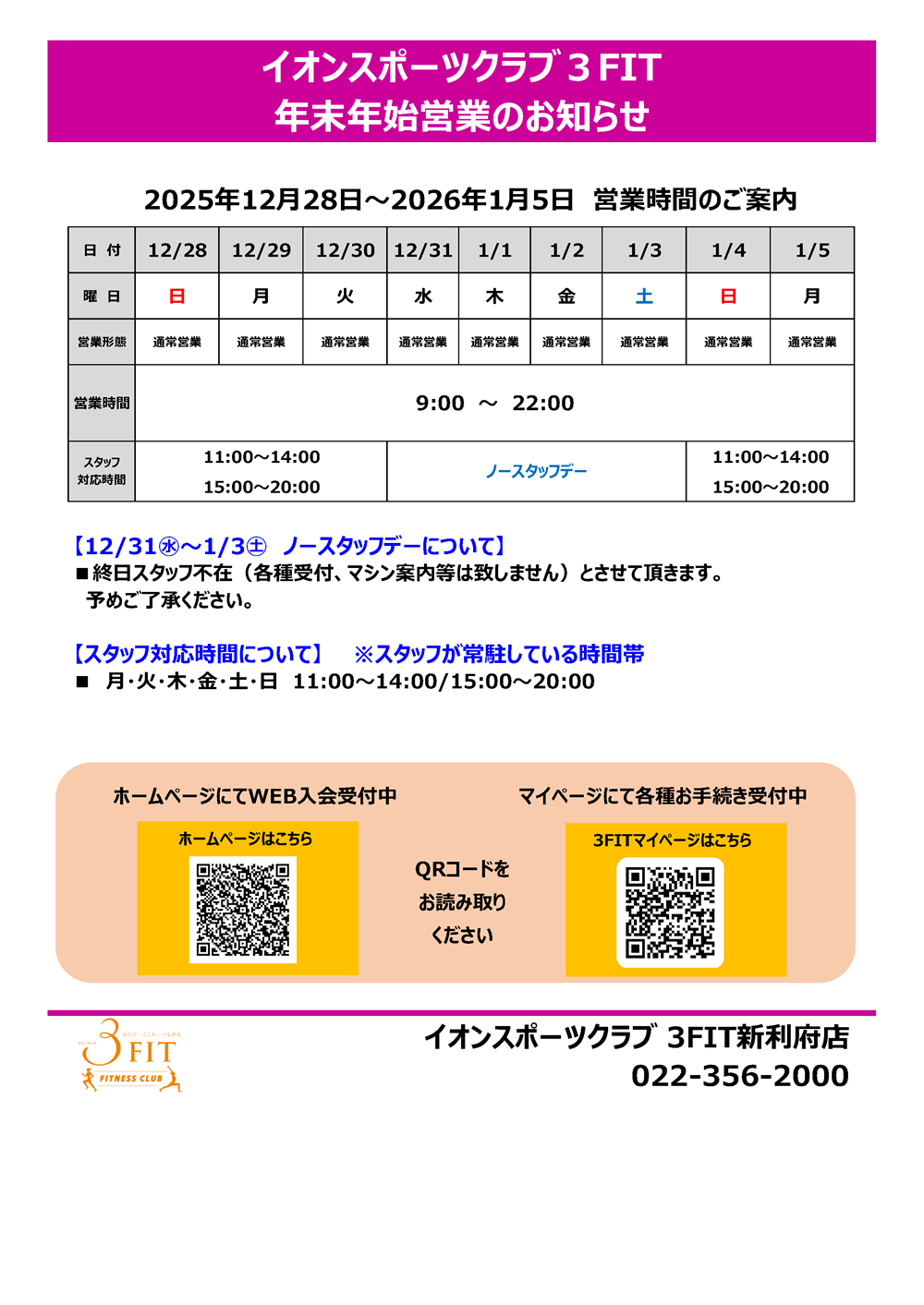 イオンスポーツクラブ 3FIT 新利府店 | マシン特化型スポーツクラブ | 店舗一覧 | イオンスポーツクラブ
