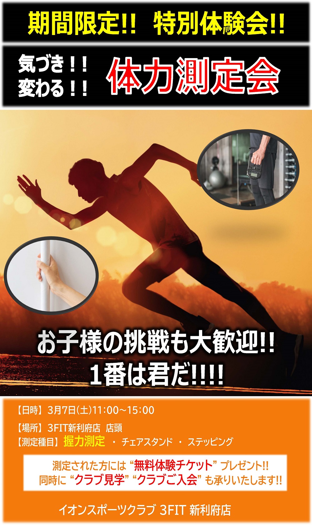 3FIT新利府店 3/7㊏体力測定会開催のお知らせ