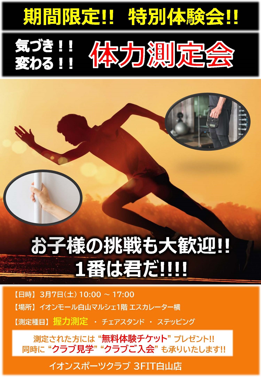 3FIT白山店 3月7日㊏体力測定会開催のお知らせ