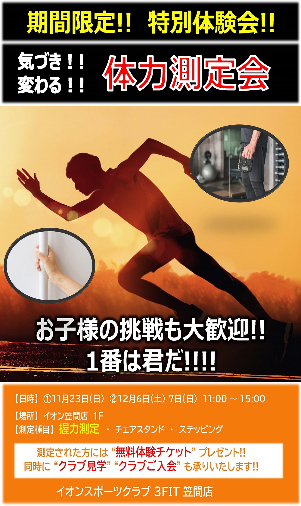 3FIT笠間店 11月・12月体力測定会開催のお知らせ