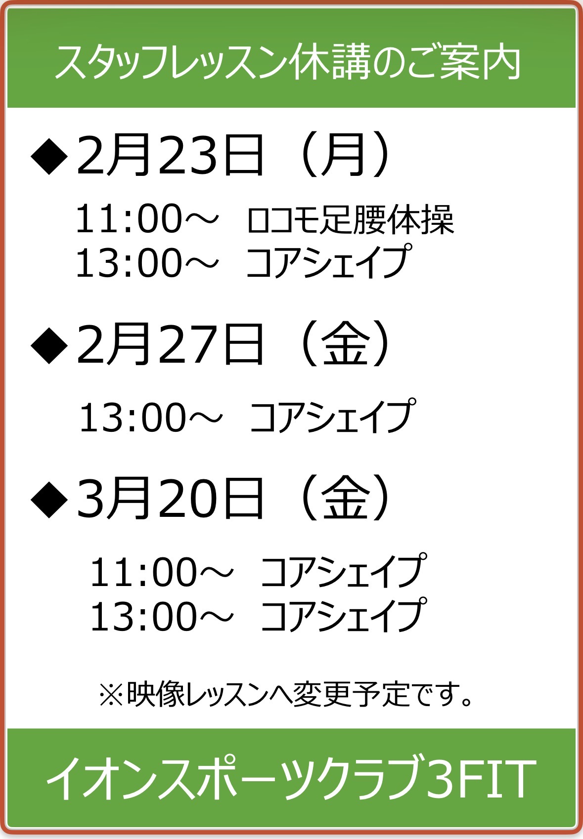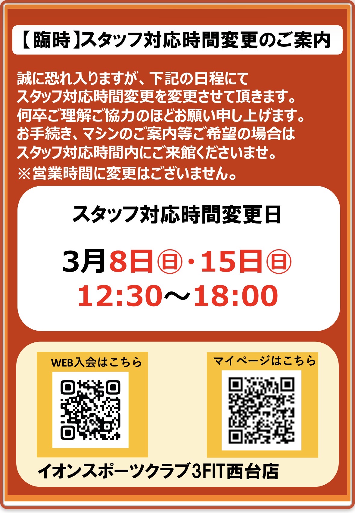 3FIT西台店【臨時】営業時間変更のご案内