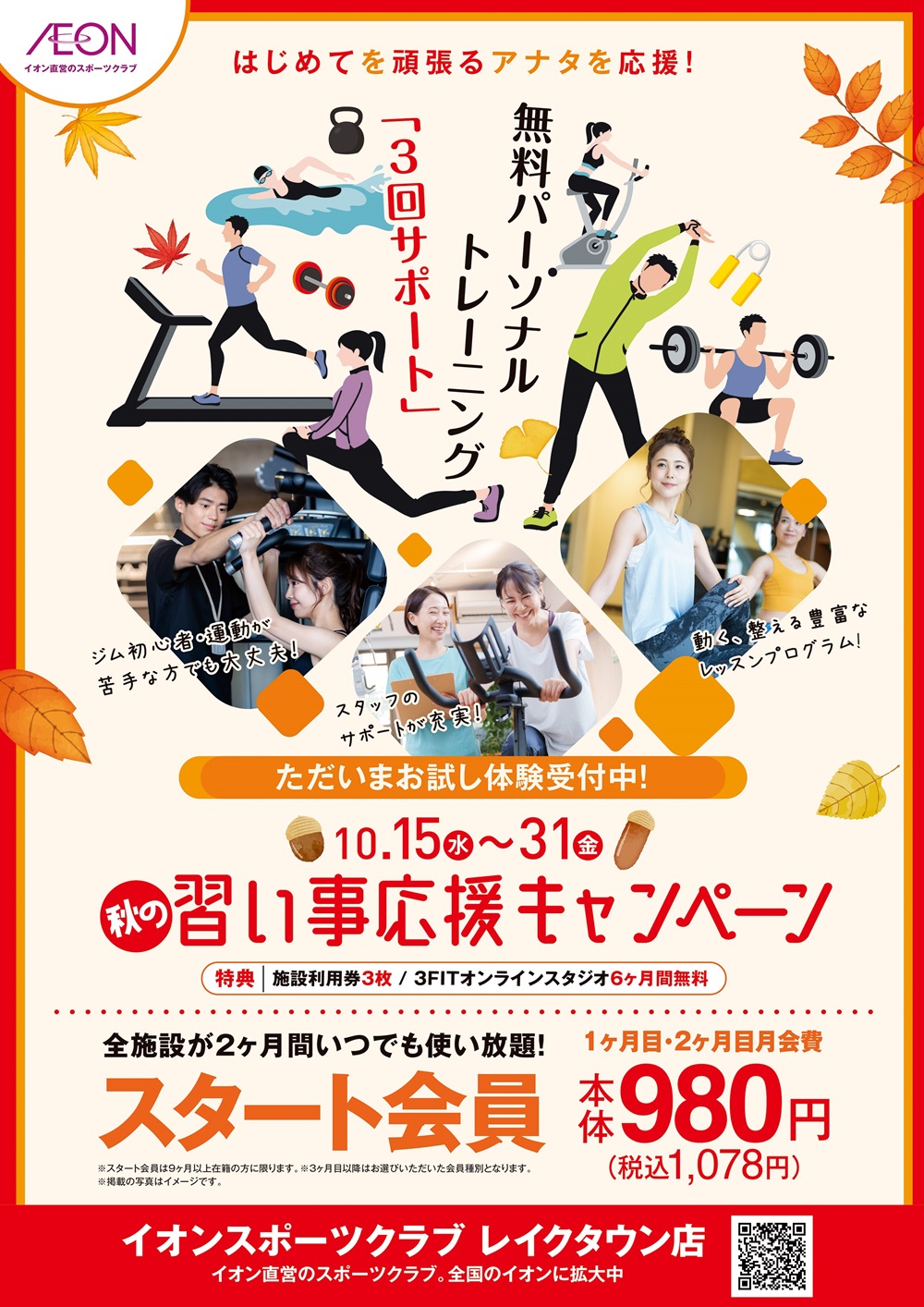 レイクタウン店 11/3(月・祝)祝日レッスンスケジュール -