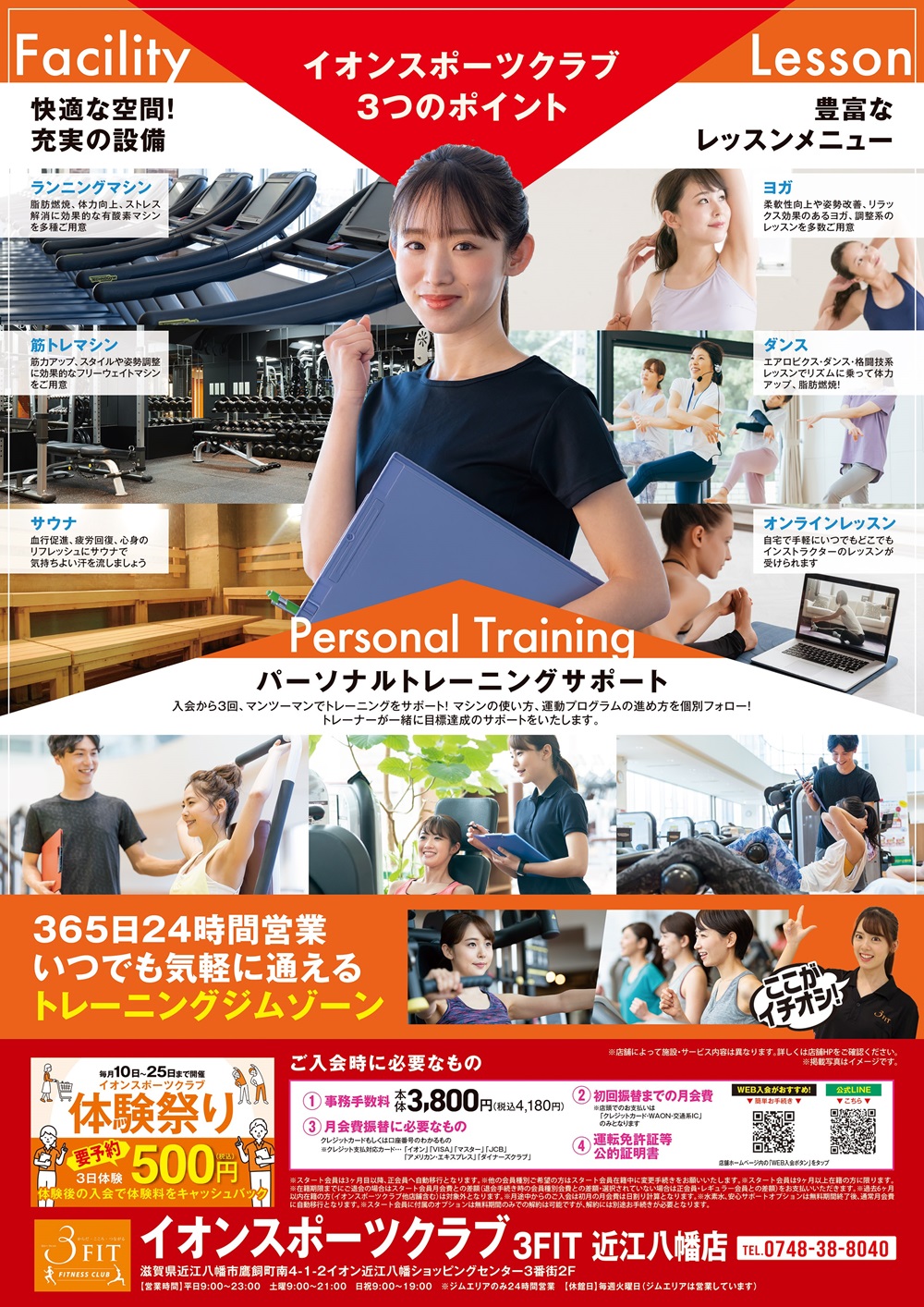 イオンスポーツクラブ 3FIT 近江八幡店はイオン近江八幡ショッピングセンター イオン3番街内にある総合スポーツクラブです。