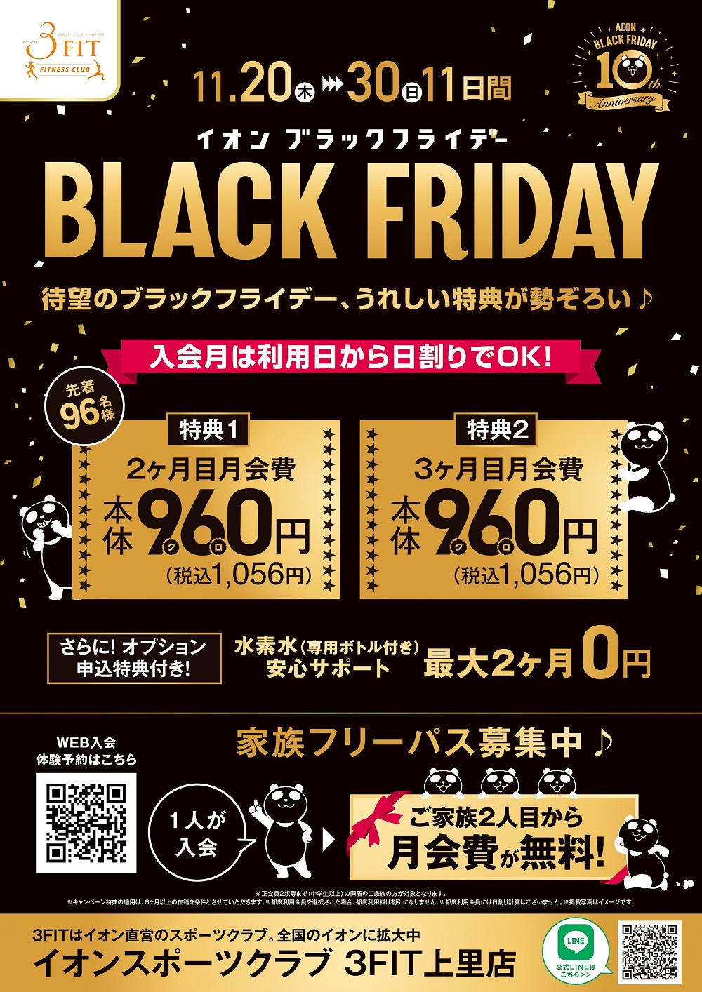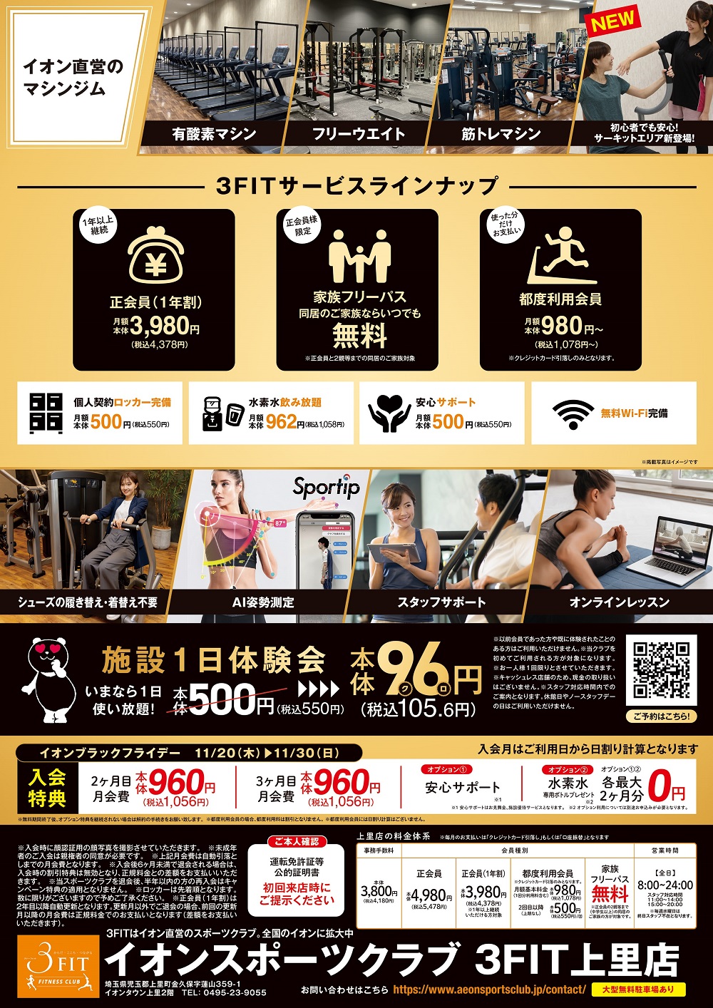 3FIT上里店 家族フリーパス制度導入のお知らせ