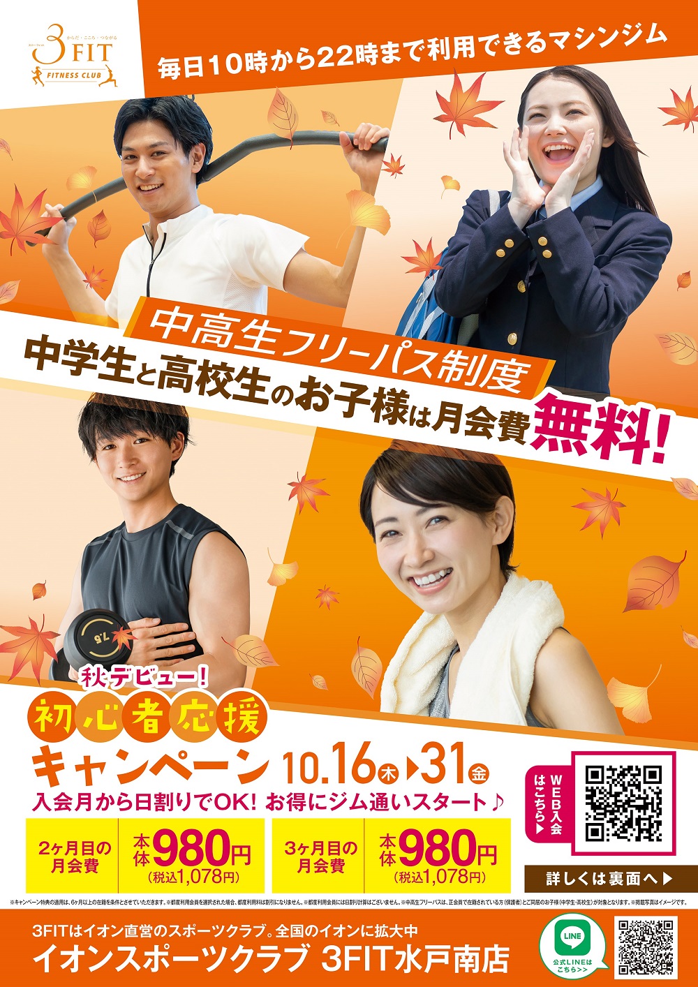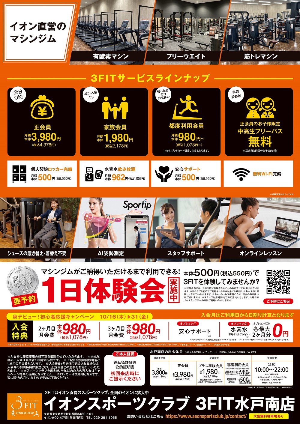 『イオンスポーツクラブ 3FIT 水戸南店 』は、イオンタウン水戸南1階にある圧倒的低価格のマシンジムです。