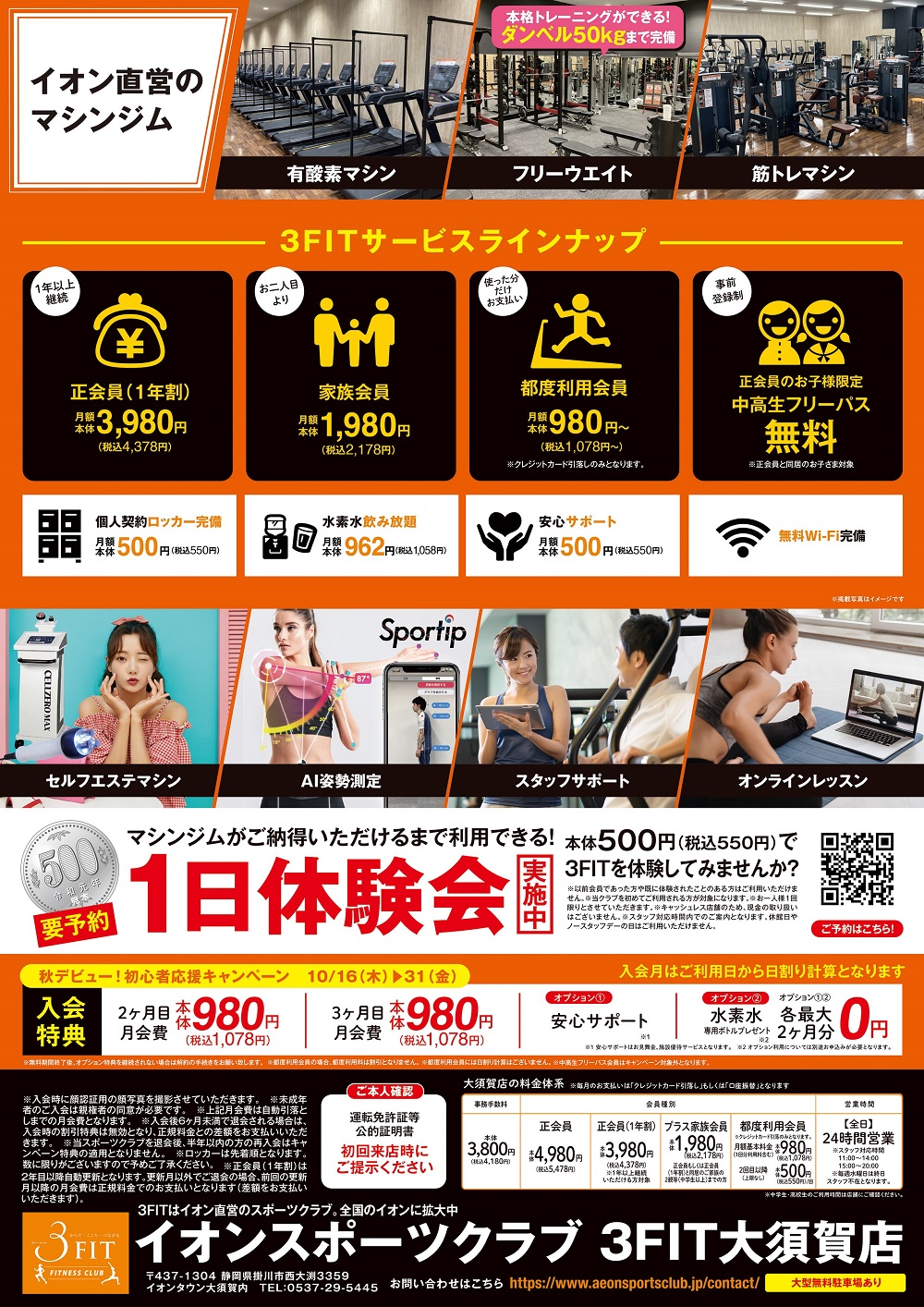 『イオンスポーツクラブ 3FIT 大須賀店』は、イオンタウン大須賀にOPENした24時間マシンジムです。