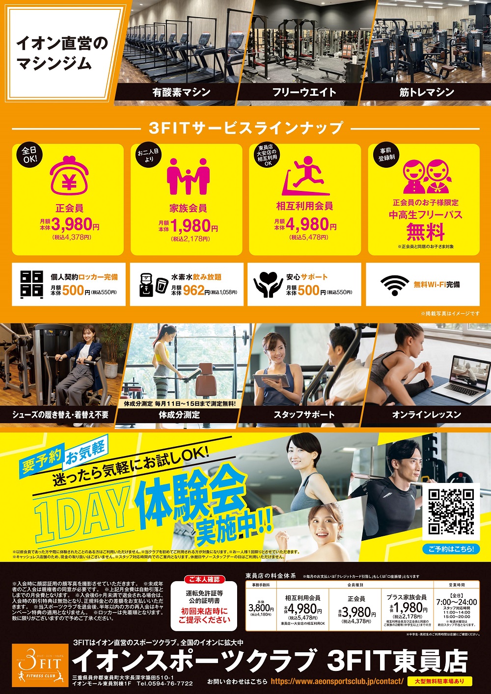 イオンモール東員(別棟)にあり大型無料駐車場完備だからお買い物ついでにご利用頂けます。