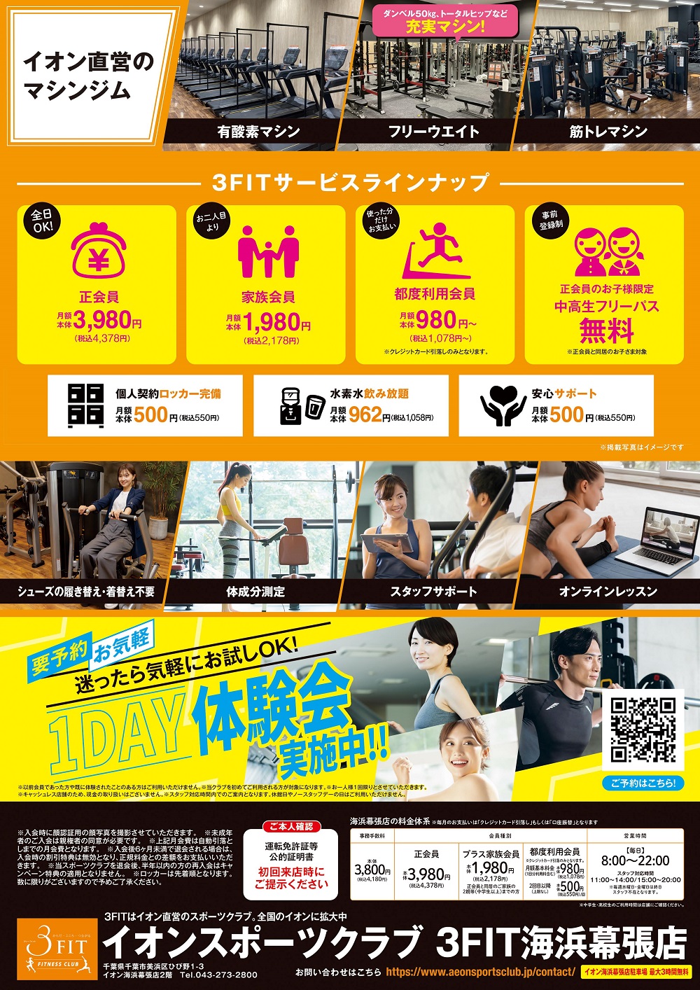 3FIT海浜幕張店☆新サービス「中高生フリーパス制度」導入のご案内