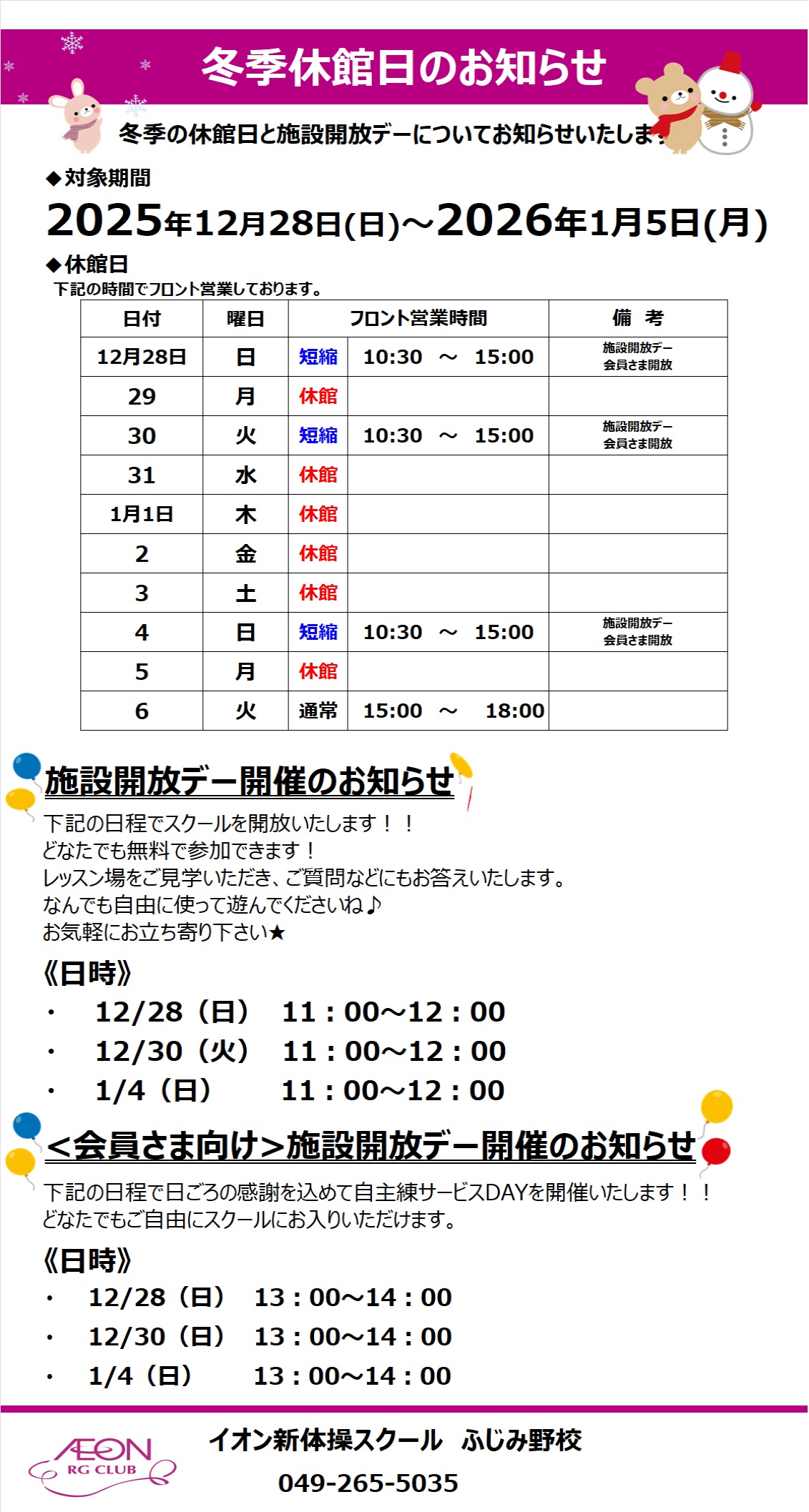 【ふじみ野校】12月度バレエクラスのお知らせ